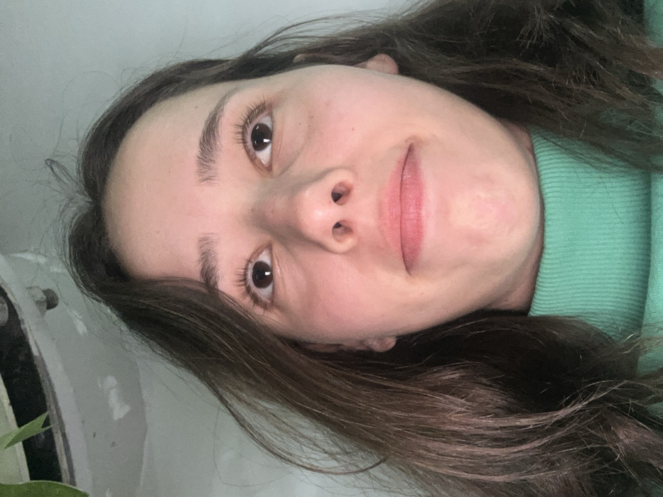 - "A close-up, low-angle photograph features a single individual, a light-skinned female with long, dark brown, slightly wavy hair framing her face" by FM-J1NM03, licensed under CC BY 4.0