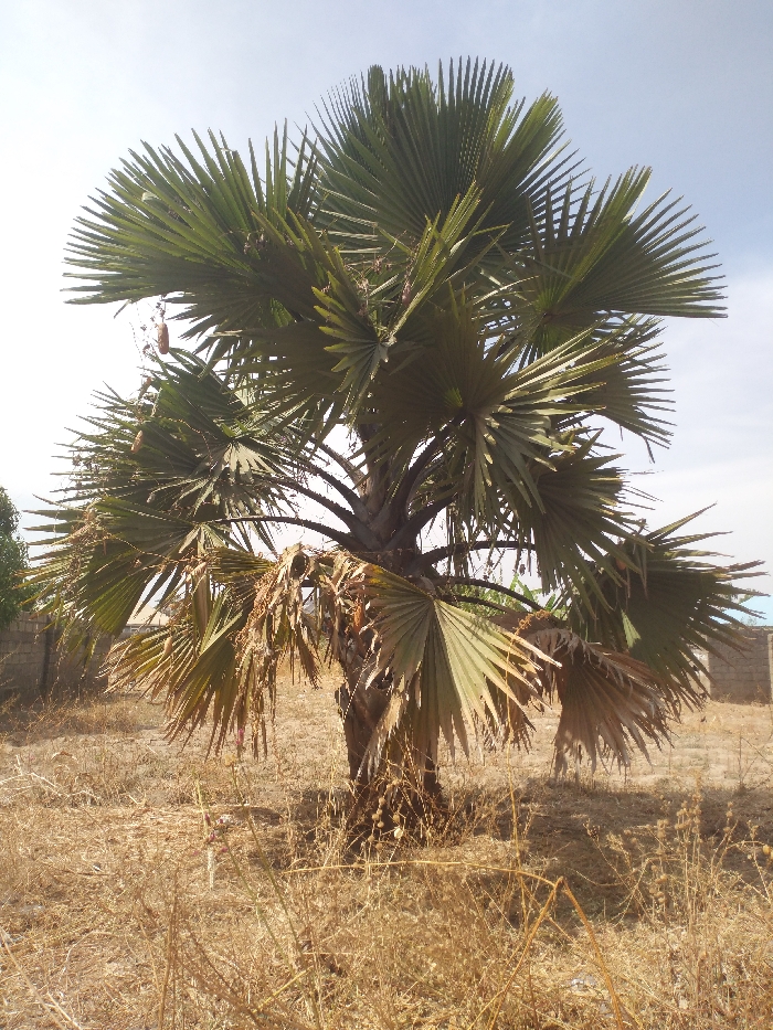 - "An upward-angled view in Narayi, Nigeria, depicts a solitary, mature fan palm tree positioned centrally" by FM-MFWzc2, licensed under CC BY 4.0