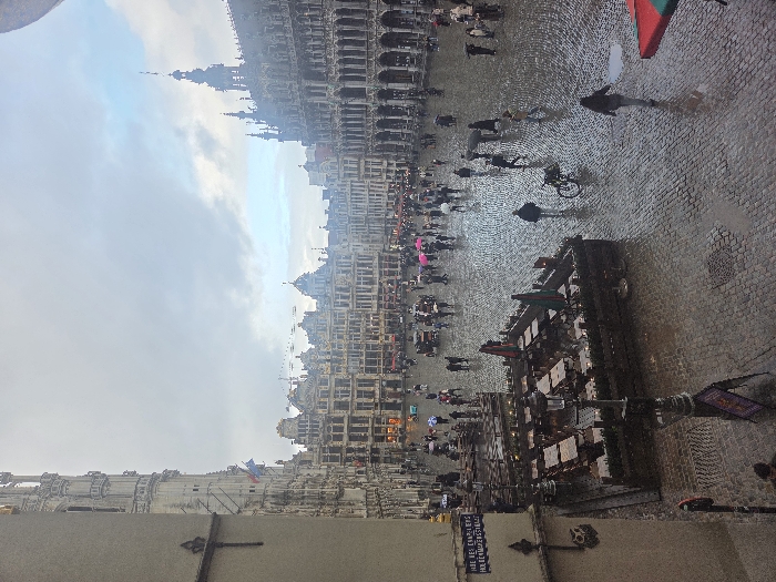 - "An elevated, wide-angle shot captures the Grand Place (Grote Markt) in Brussels, Belgium, on an overcast and wet day" by FM-HS94h1, licensed under CC BY 4.0