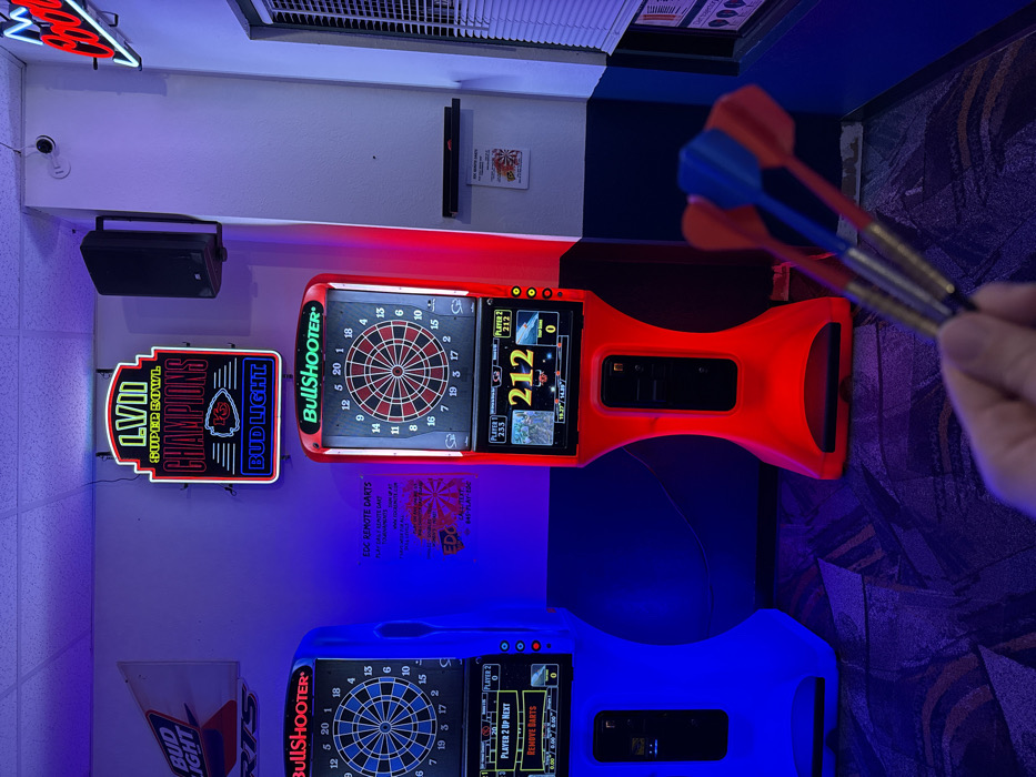 - "A vibrant bar scene presents two Bullshooter electronic dartboards, one glowing red and the other blue" by FM-EQHYk2, licensed under CC BY 4.0