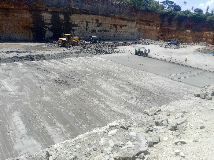 The image depicts an active open-pit construction or quarry site in Juja, Kenya