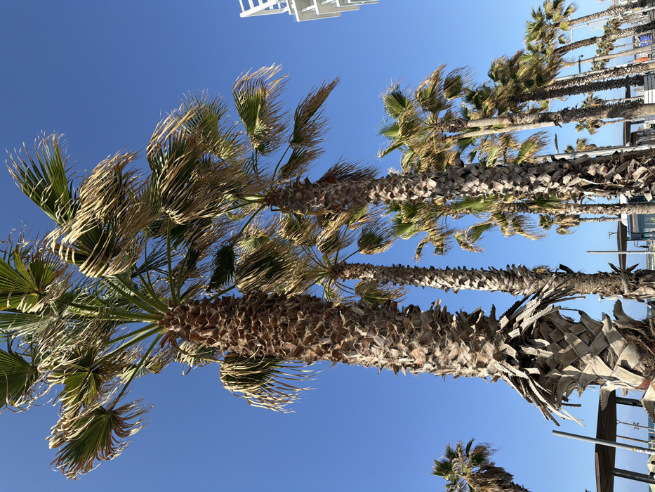 - "The image displays an upward-angled view of a promenade lined with numerous tall palm trees against a clear, bright blue sky in Tel-Aviv, Israel" by FM-tVHr02, licensed under CC BY 4.0