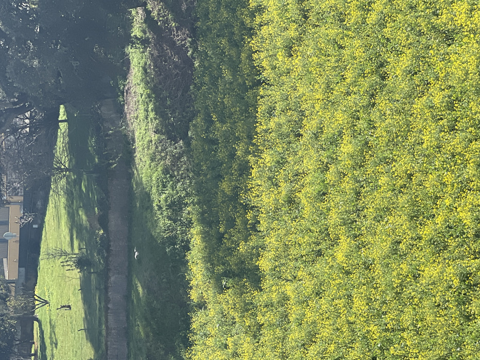 - "A vibrant field of yellow wildflowers dominates the scene, transitioning to a green grassy area with trees on the left" by FM-cBaSB2, licensed under CC BY 4.0