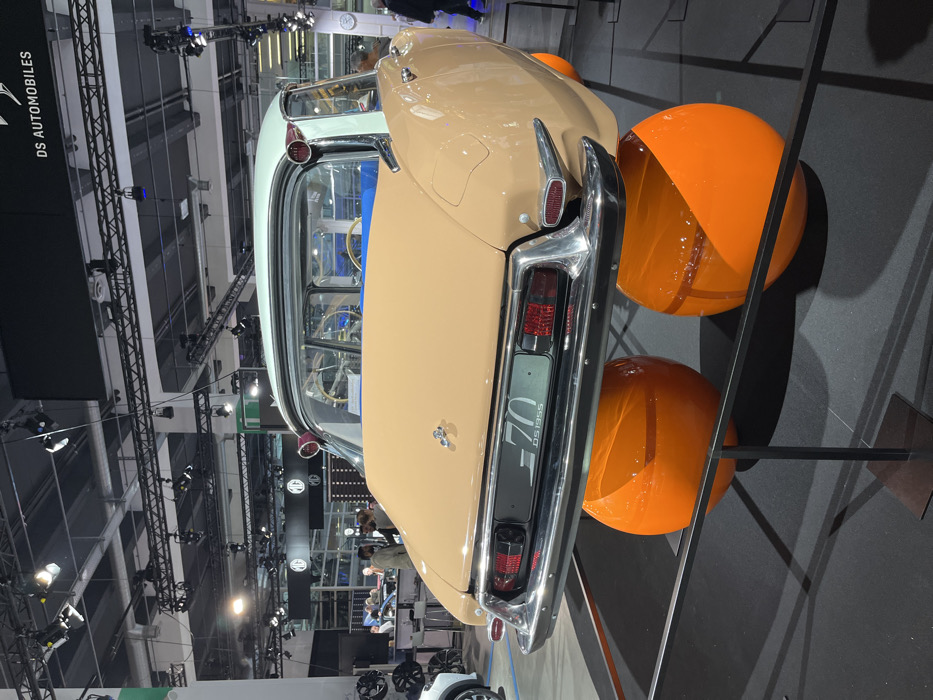 - "A two-tone vintage Citroën DS 1955 automobile, with a beige body and light green roof, is presented indoors at an exhibition" by FM-eWTi73, licensed under CC BY 4.0
