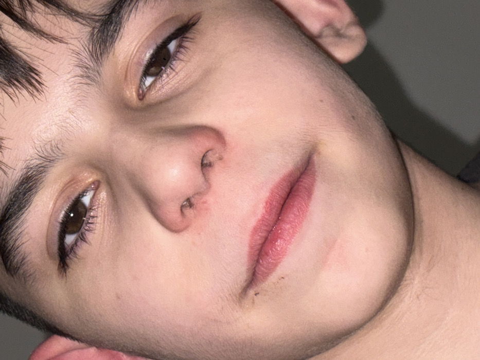 - "The image presents a tightly cropped, slightly upward-angled, close-up portrait of a single individual's face, likely a male adolescent, with fair skin and dark hair" by FM-86Kh83, licensed under CC BY 4.0
