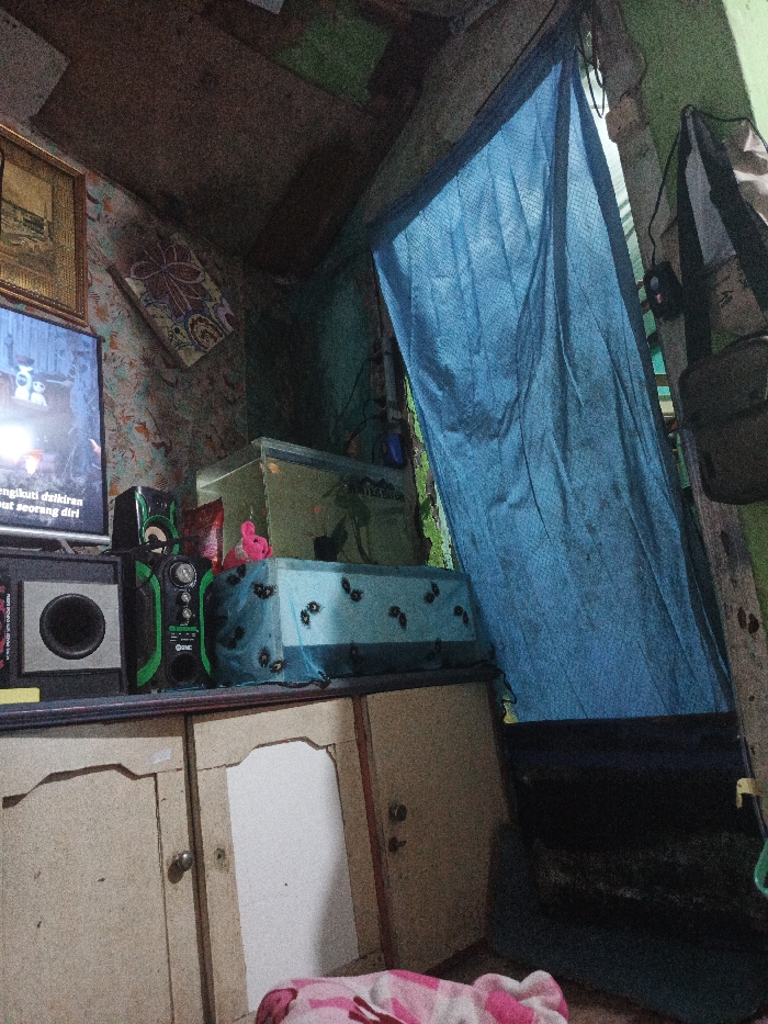 This interior image, captured in Bandung City, Indonesia, depicts a cluttered room from a low vantage point