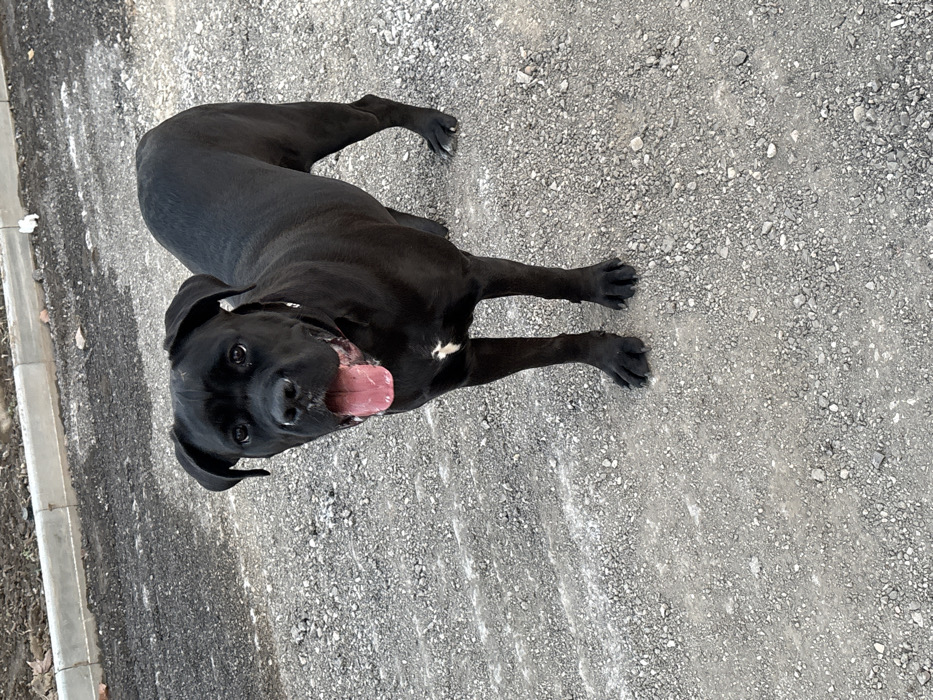 - "The image depicts a large, adult, black short-haired dog, consistent with a Cane Corso or similar mastiff-type breed, standing on a gravel surface in Vidin, Bulgaria" by FM-8m4I83, licensed under CC BY 4.0