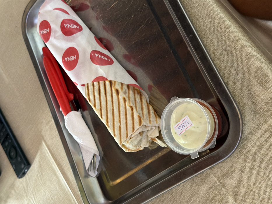 - "A shawarma-style wrap, partially unwrapped, rests on a rectangular, reflective metal tray" by FM-RjPGA3, licensed under CC BY 4.0