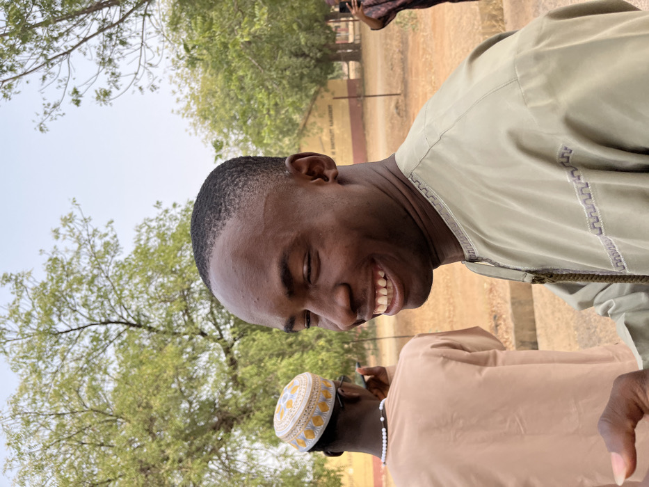 This image depicts three individuals outdoors in Kanti, Nigeria