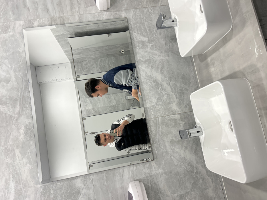 - "The scene depicts a reflection within a public restroom in Kardzhali, Bulgaria" by FM-9sxMI3, licensed under CC BY 4.0