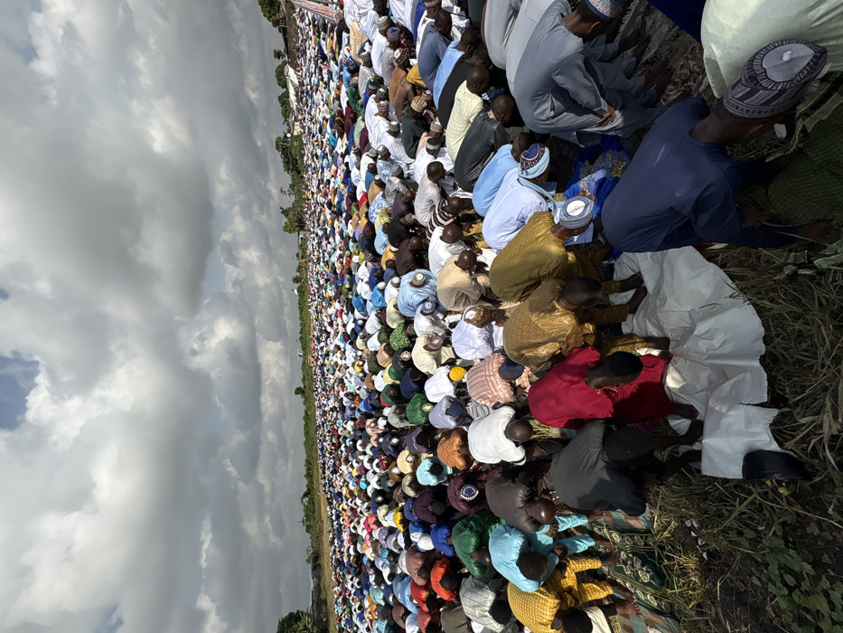 - "A wide-angle photograph captures a vast outdoor congregation of predominantly male individuals engaged in Islamic prayer (Salat) in Ikeja, Nigeria" by FM-2vVbk1, licensed under CC BY 4.0