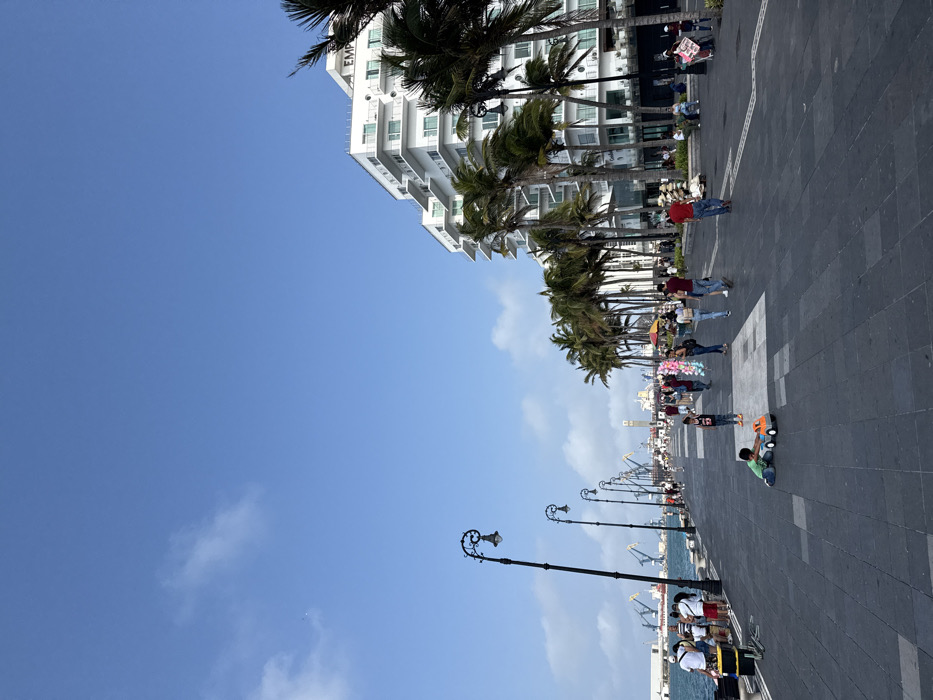 The image depicts a daytime scene on the Malecón in Veracruz City, Mexico