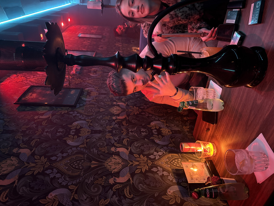 The image displays an indoor scene within a lounge or shisha bar in Varna, Bulgaria