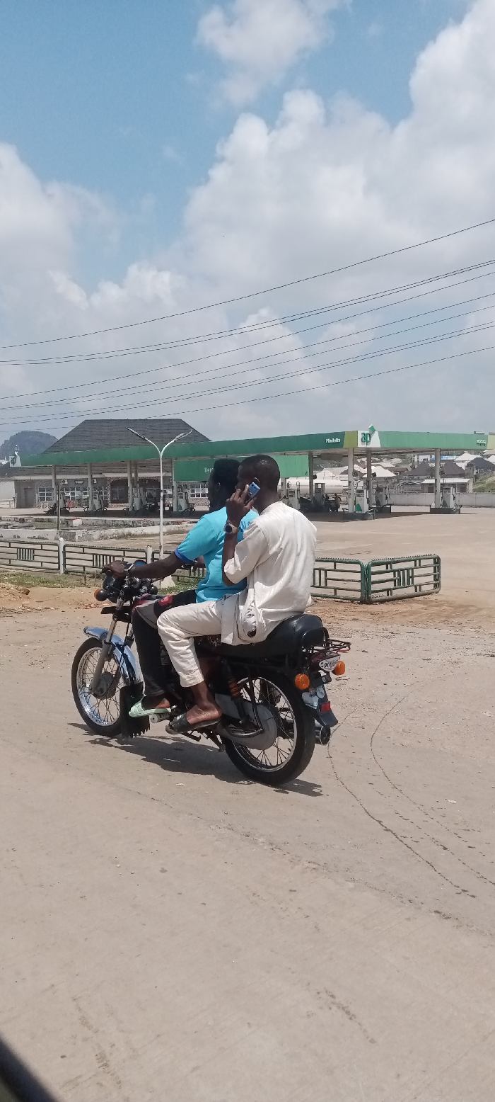 - "The image depicts two males riding a motorcycle on an unpaved road under a partially cloudy sky, located in the city of Iddah, Nigeria" by FM-MVDLR2, licensed under CC BY 4.0