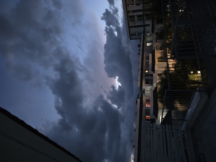 - "The image depicts an evening scene in Trachoni, Cyprus, under an overcast sky filled with dark, dense clouds displaying shades of blue-gray, with a subtle purplish-pink hue visible near the horizon line in the central upper portion" by FM-nLZA12, licensed under CC BY 4.0