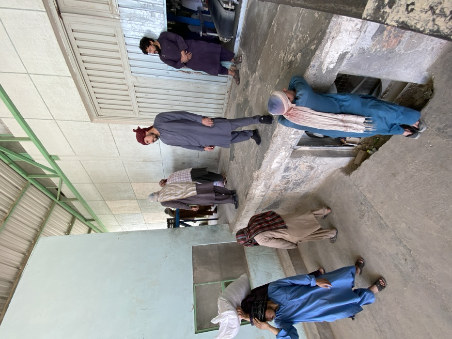 The image depicts an interior scene within an industrial or processing facility in the city of Qazi Kariz, Afghanistan