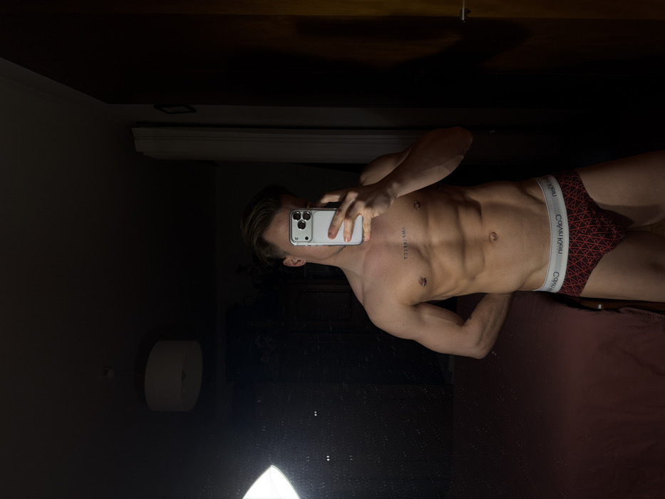 - "A shirtless man in red and black Calvin Klein underwear takes a mirror selfie, obscuring his face with his phone" by FM-YfKzI3, licensed under CC BY 4.0