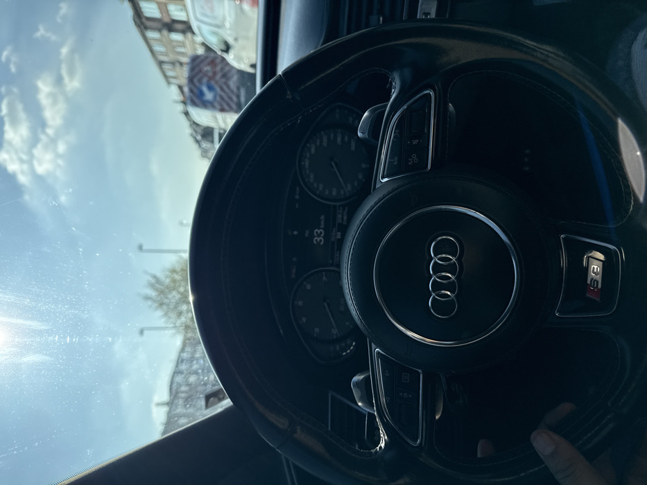 - "The image depicts a first-person perspective from the driver's seat of an Audi S3, identified by the "S3" badge on the multi-function steering wheel and the prominent Audi rings logo" by FM-0UOFG2, licensed under CC BY 4.0