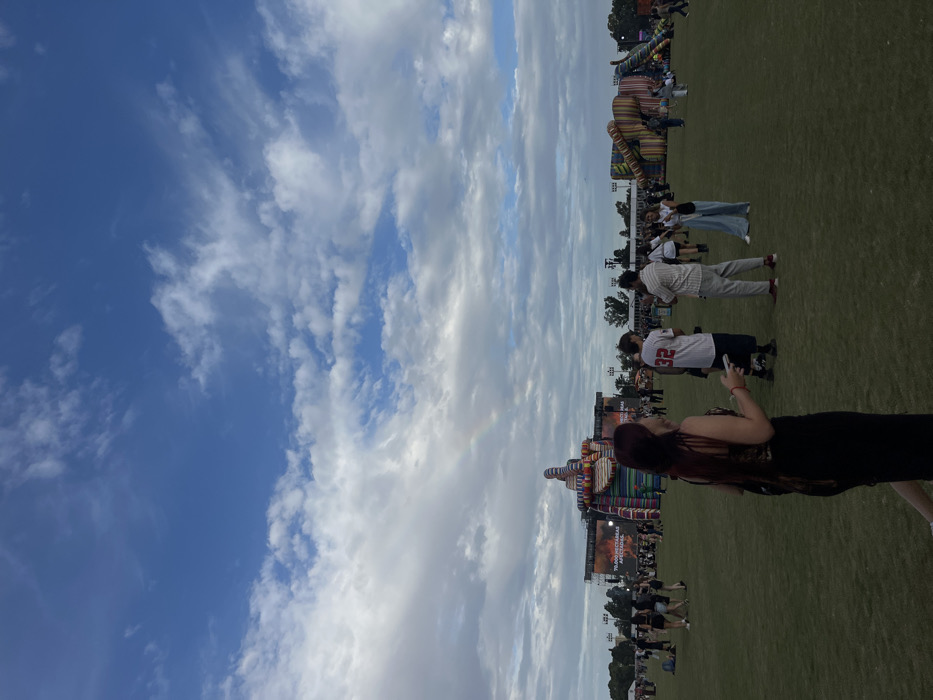 - "The image displays a large outdoor event situated on an expansive green grassy field under a partly cloudy sky, with a faint rainbow visible in the upper left quadrant" by FM-PEACg1, licensed under CC BY 4.0