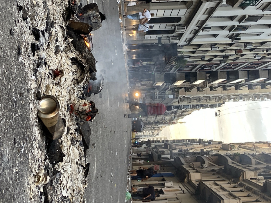 - "A street view shows piles of burning debris and an open metal can on the left" by FM-faLbl2, licensed under CC BY 4.0