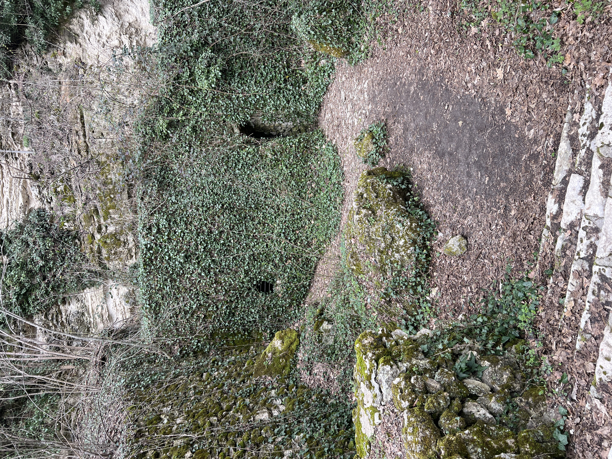 - "An ivy-covered stone structure with two dark openings is situated alongside a dirt path in a wooded area" by FM-SHO9l2, licensed under CC BY 4.0