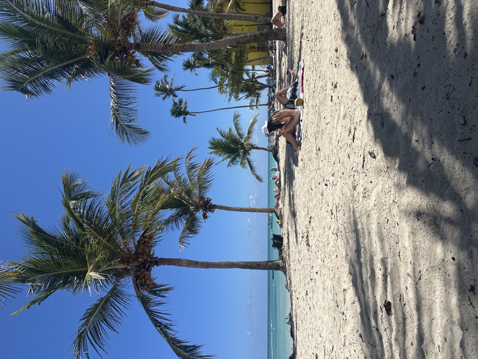 This image depicts a sunny beach scene in Higüey, Dominican Republic