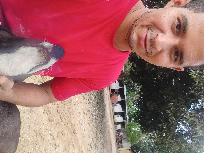 - "A man in a red t-shirt holds a dog with a black and white face" by FM-WujkC2, licensed under CC BY 4.0