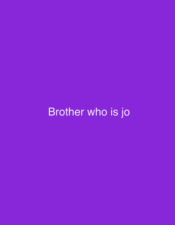 The image displays a solid, uniform purple background. Centered on this field, white sans-serif text reads 'Brother who is jo'. No discernible people, subjects, objects, actions, interactions, or environmental features are depicted within the image. The image does not contain any visual elements that identify a specific location, including the city of Strasbourg, France.