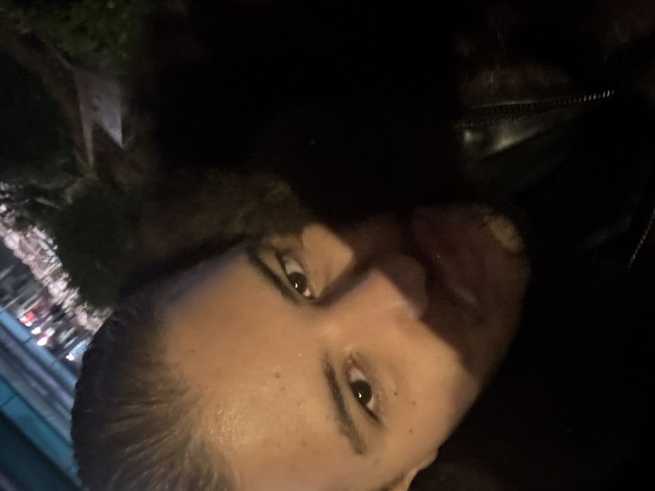 The image presents a close-up, upward-angled selfie of an adult male located outdoors at night in Créteil, France