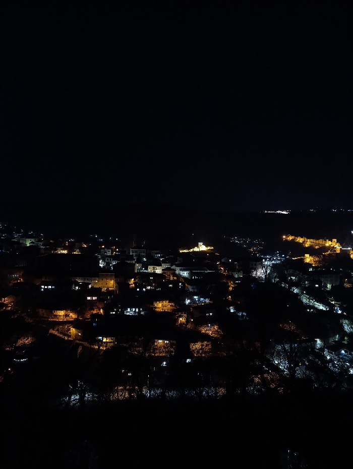 - "The image displays a panoramic nighttime cityscape of Veliko Tarnovo, Bulgaria, captured from an elevated perspective" by FM-DciEm2, licensed under CC BY 4.0