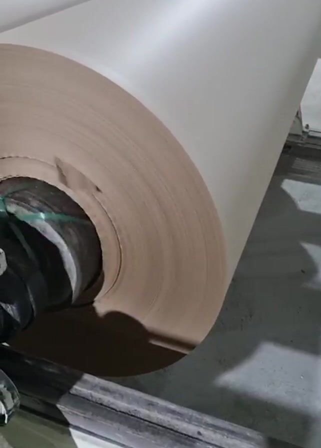 large roll of light brown paper being unwound by a machine