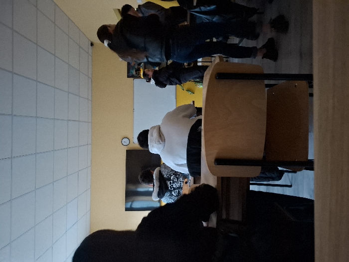 The image depicts an indoor classroom or educational facility located in Shumen, Bulgaria