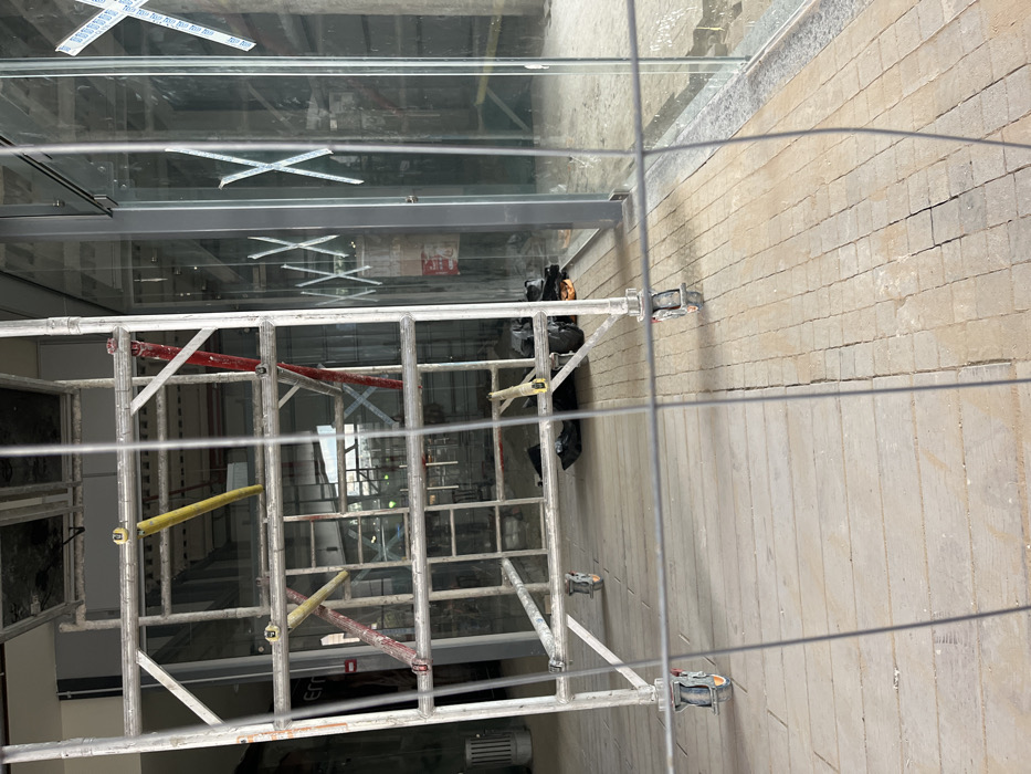 - "An indoor construction scene shows a scaffolding structure in front of a glass-walled area" by FM-EBxyC2, licensed under CC BY 4.0