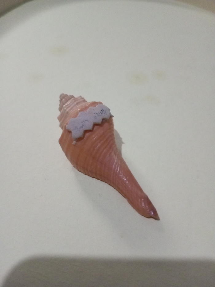 - "A pale pink, spiral-shaped seashell rests on a plain, light-colored surface" by FM-indDB2, licensed under CC BY 4.0
