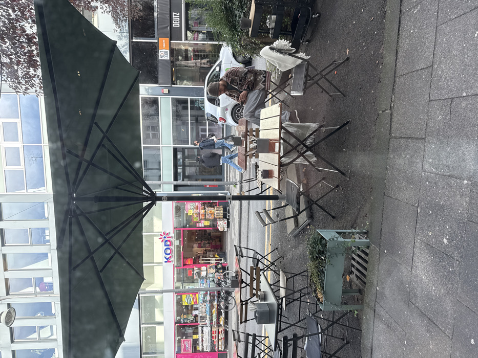 - "This image captures an outdoor cafe seating area on Cäsarstraße 6, 50676 Köln, Germany, with a commercial street and buildings in the background" by FM-k4bxv1, licensed under CC BY 4.0