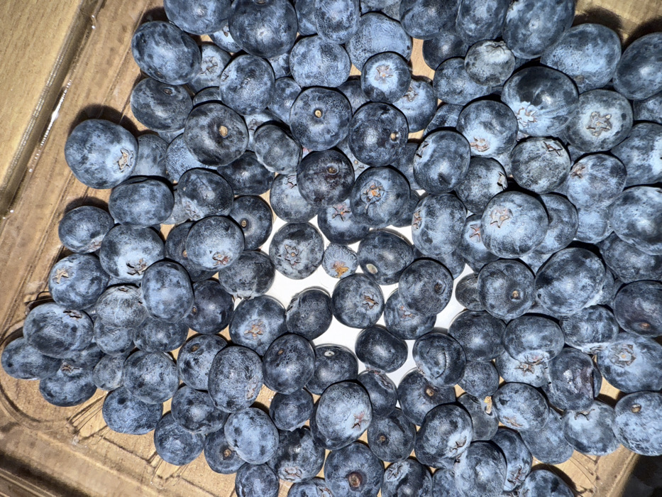 - "A container filled with a dense pile of fresh blueberries" by FM-4PcBo1, licensed under CC BY 4.0