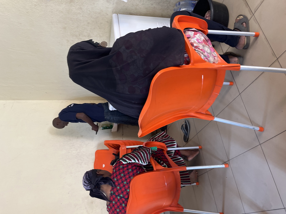 An indoor scene in Abobo, Nigeria, depicts three individuals