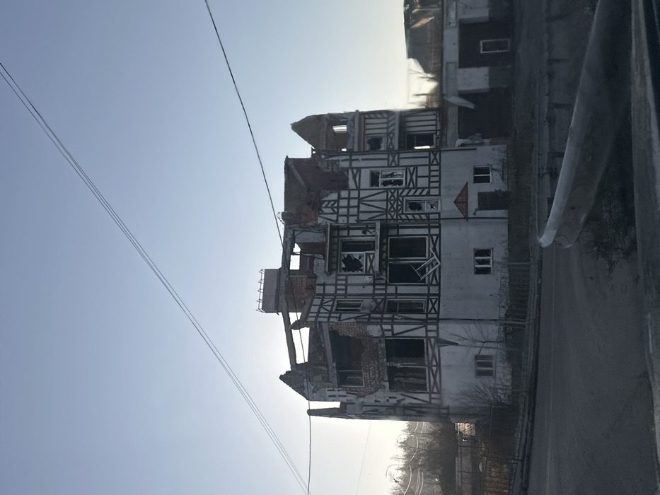 - "The image depicts a severely damaged multi-story building located in Hostomel, Ukraine" by FM-vN6QQ2, licensed under CC BY 4.0