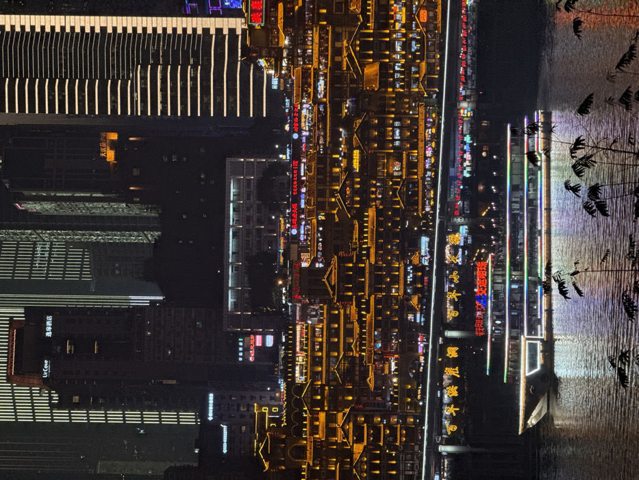 - "The image presents a nocturnal urban landscape in Chongqing, China, with the vantage point likely from or facing the 江北城街道 area, looking towards structures resembling Hongyadong" by FM-K0Kp62, licensed under CC BY 4.0