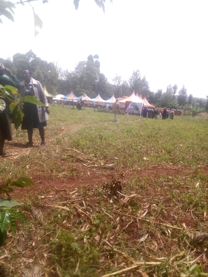 An outdoor scene in Getenga ward, Kenya, depicts an event held in a clearing