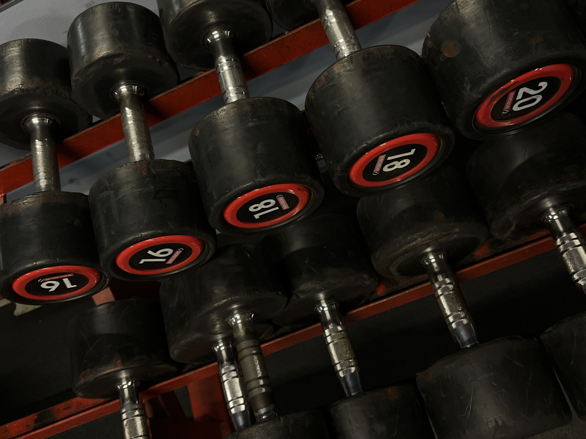 - "rack of dumbbells in a gym" by FM-8kmxJ3, licensed under CC BY 4.0