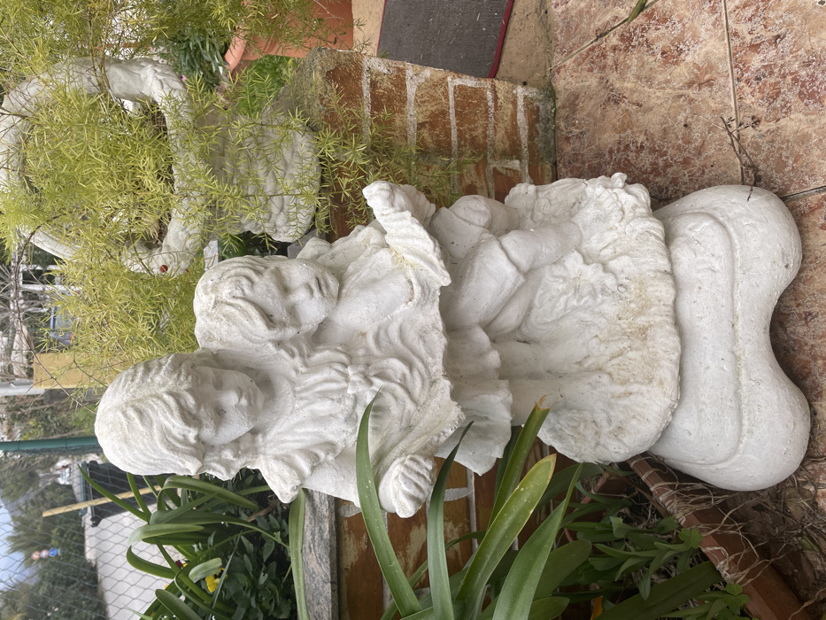 - "The image depicts an outdoor garden scene in Donja Lastva, Montenegro, centered on a weathered white concrete statue of two children" by FM-srcYD2, licensed under CC BY 4.0