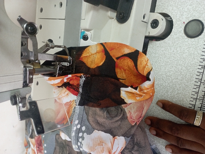 A close-up image captures the active workspace of an industrial overlock sewing machine located in Alor, Nigeria