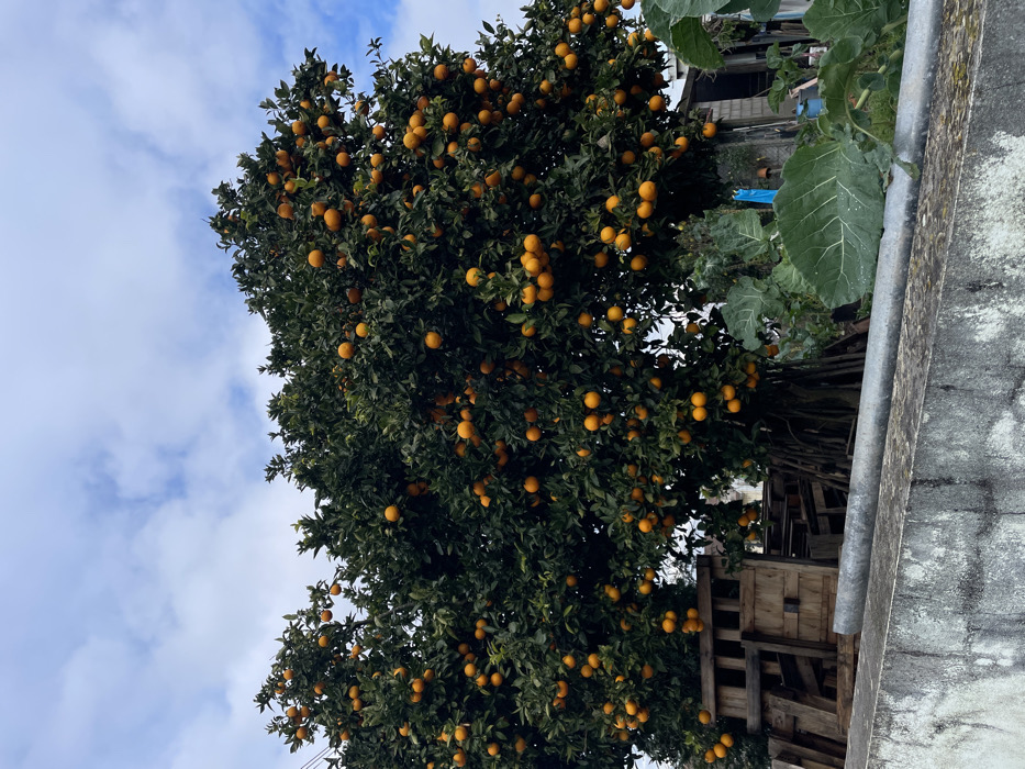 - "The image displays a large orange tree heavily laden with numerous ripe, orange fruits, situated under an overcast sky with scattered white and grey clouds" by FM-aSc183, licensed under CC BY 4.0