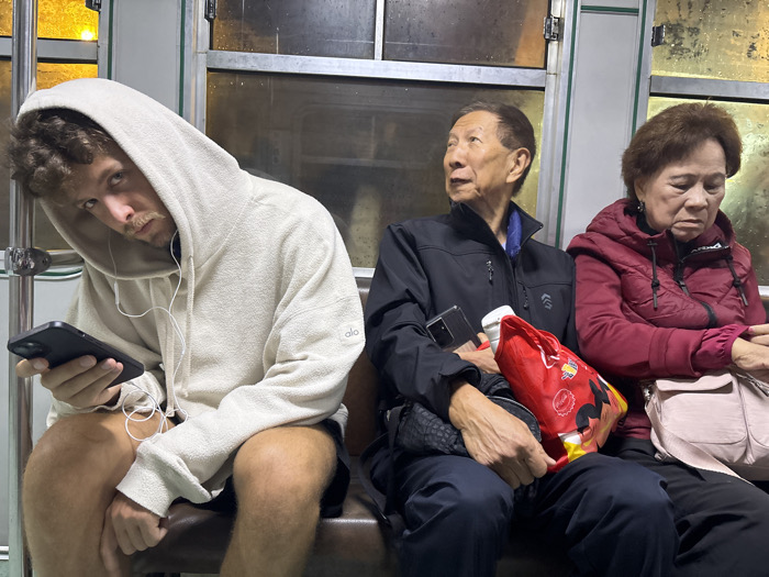 - "An indoor scene depicts three individuals seated side-by-side on a public transport vehicle, consistent with a train or subway car, located in Alishan Township, Taiwan" by FM-bmo3E3, licensed under CC BY 4.0