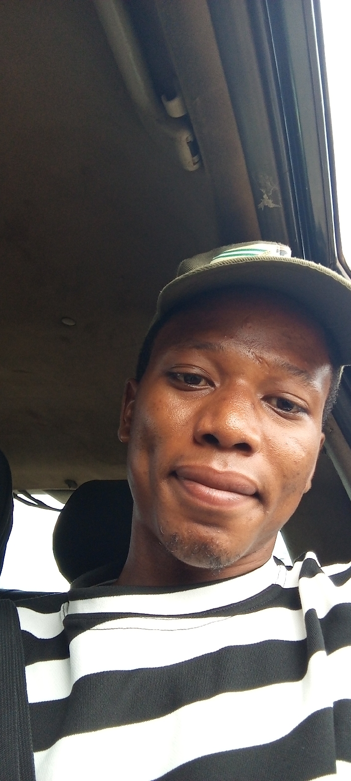 A dark-complexioned male, appearing to be a young adult, is seated inside a vehicle, captured in a close-up, front-facing perspective