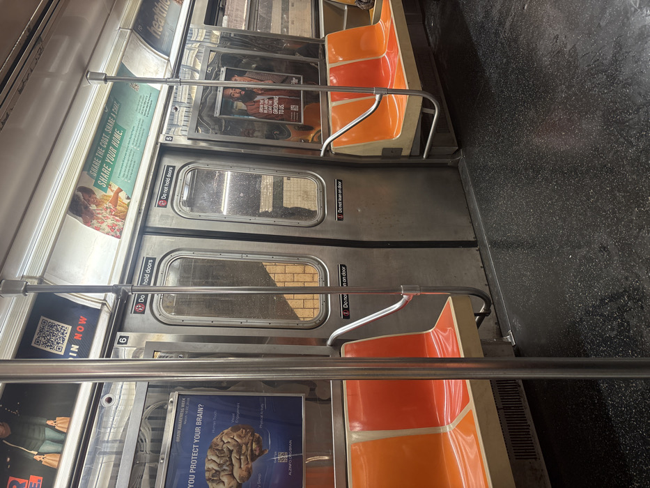 - "The image depicts the interior of a New York City subway car, likely stationary at a platform" by FM-Ip0oa2, licensed under CC BY 4.0
