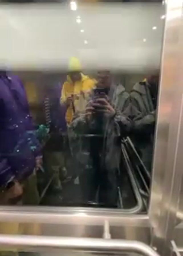 A short, vertically-oriented video shows a group of people in an elevator