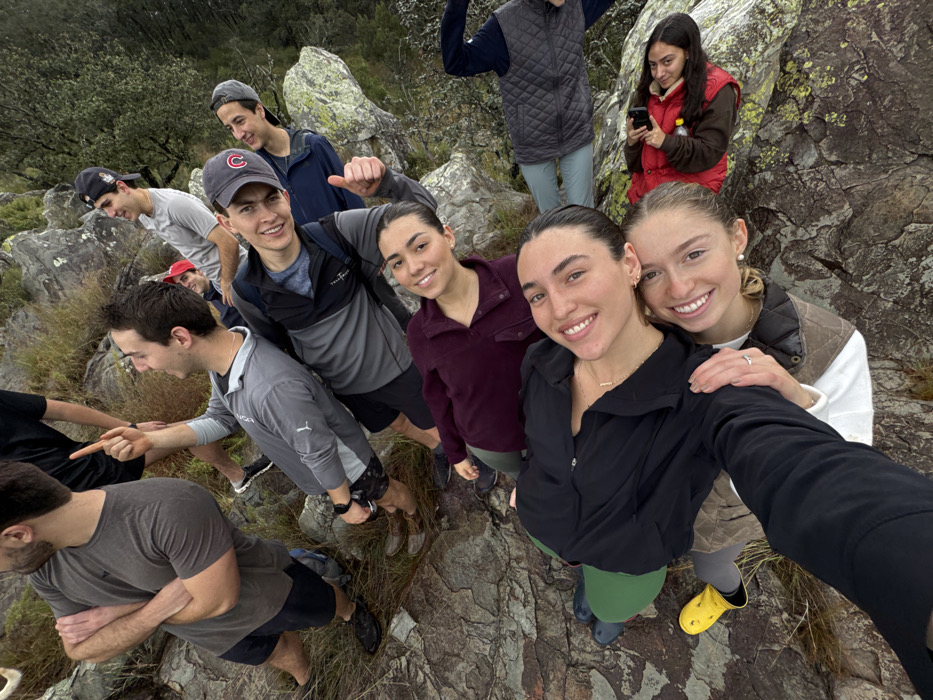 - "The image captures a group of eleven individuals posing for a selfie on a rocky, vegetated incline in Huasca de Ocampo, Mexico" by FM-G7z632, licensed under CC BY 4.0