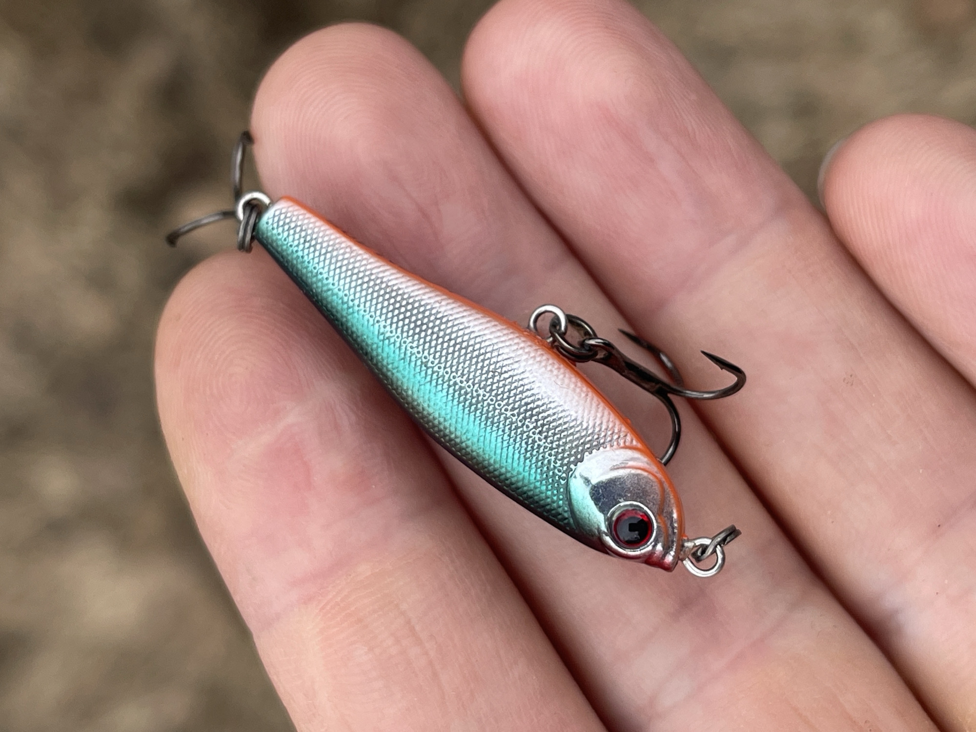 small fishing lure held in a human hand